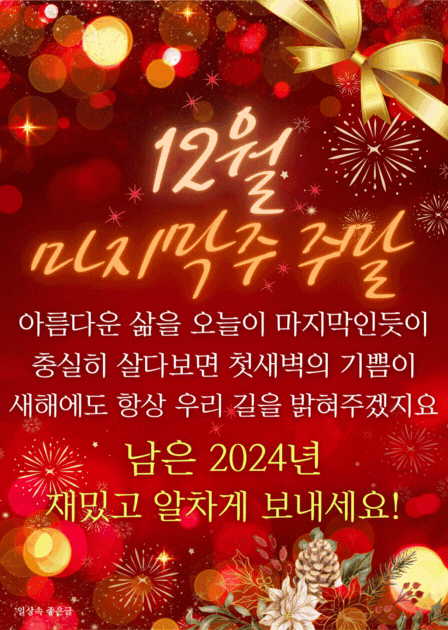 | 🌇연말연시 인사말 좋은글 모음-연말 카톡 인사말,연말 카톡 이미지 문구 (0) | 2024.12.29 |