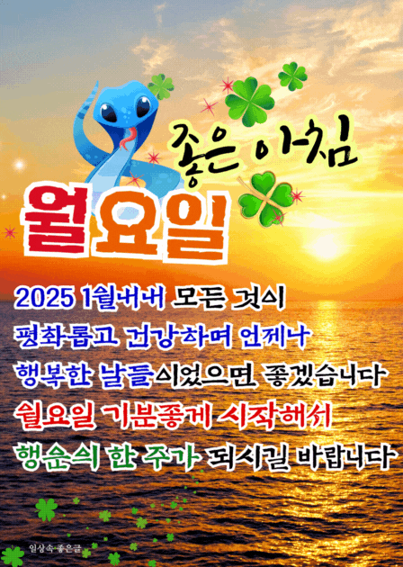 | 🐍1월 월요일 인사말 이미지,1월 월요일 아침인사말-2025년1월 인사말 (0) | 2025.01.06 |