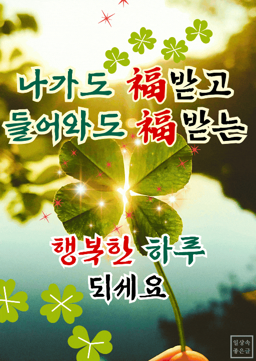 🍀나가도 들어와도 복받는 행복한 하루 인사말 무료이미지와 행운글귀, 한번에 카톡으로 공유하기⬇️